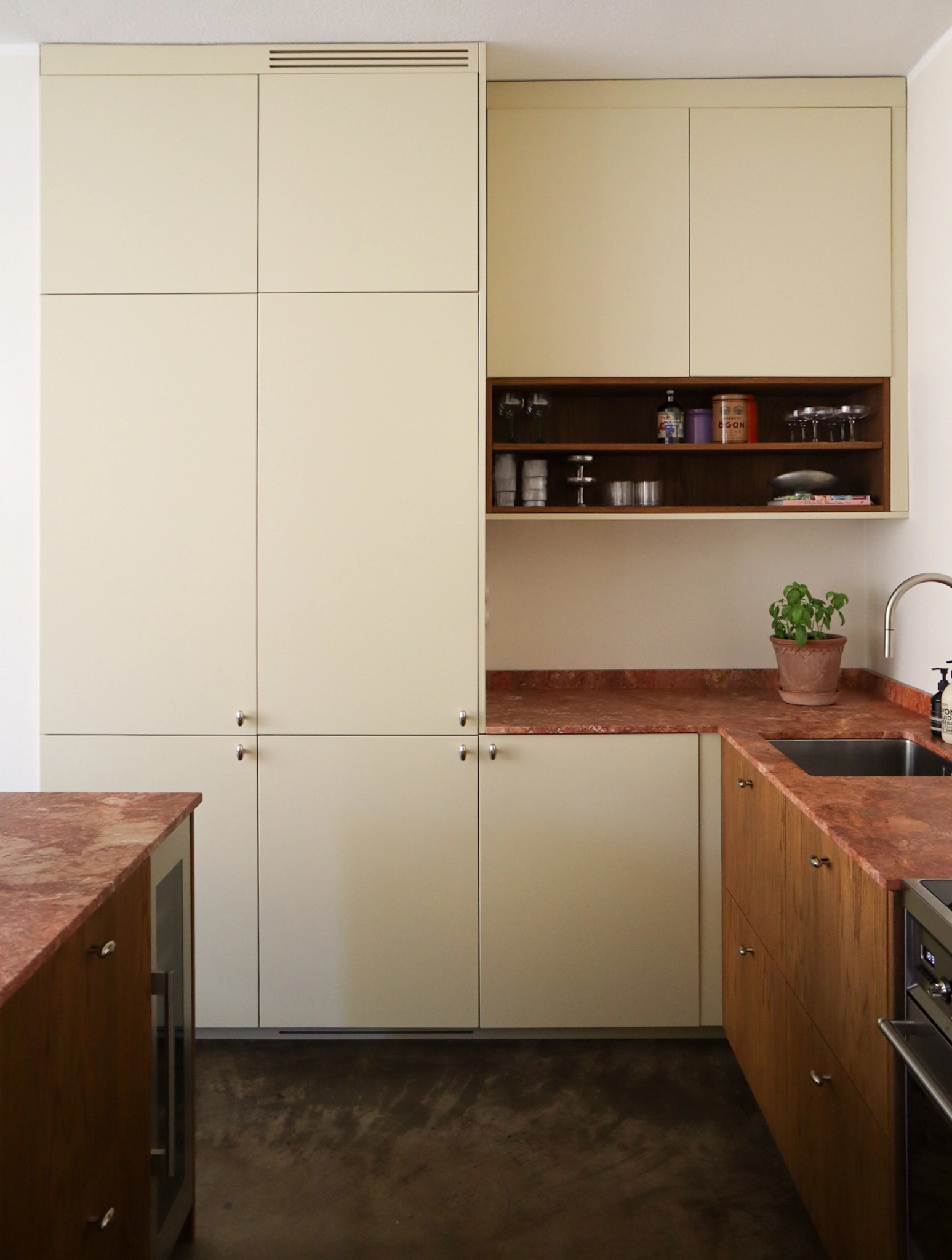 Samples and images serve as a reference only. Each block carries its own tone, fossil structure, and surface character. We review the slabs together and plan the layout for a balanced and intentional final result.
