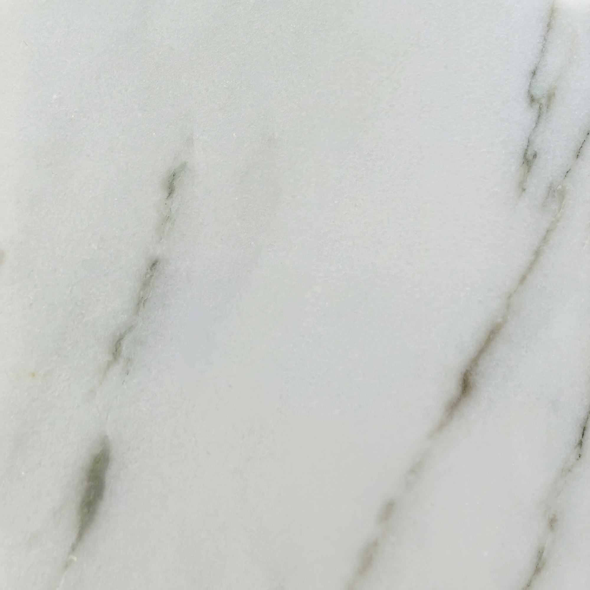 Calacatta Caldia är en italiensk marmor med varm vit grundton och subtil grågrön ring med mjuk, återhållsam rörelse. Samspelet mellan färg och mönster ger materialet ett lugnt och förfinat uttryck. Varje skiva visar naturlig variation samtidigt som helhetsintrycket förblir sammanhållet och konsekvent.