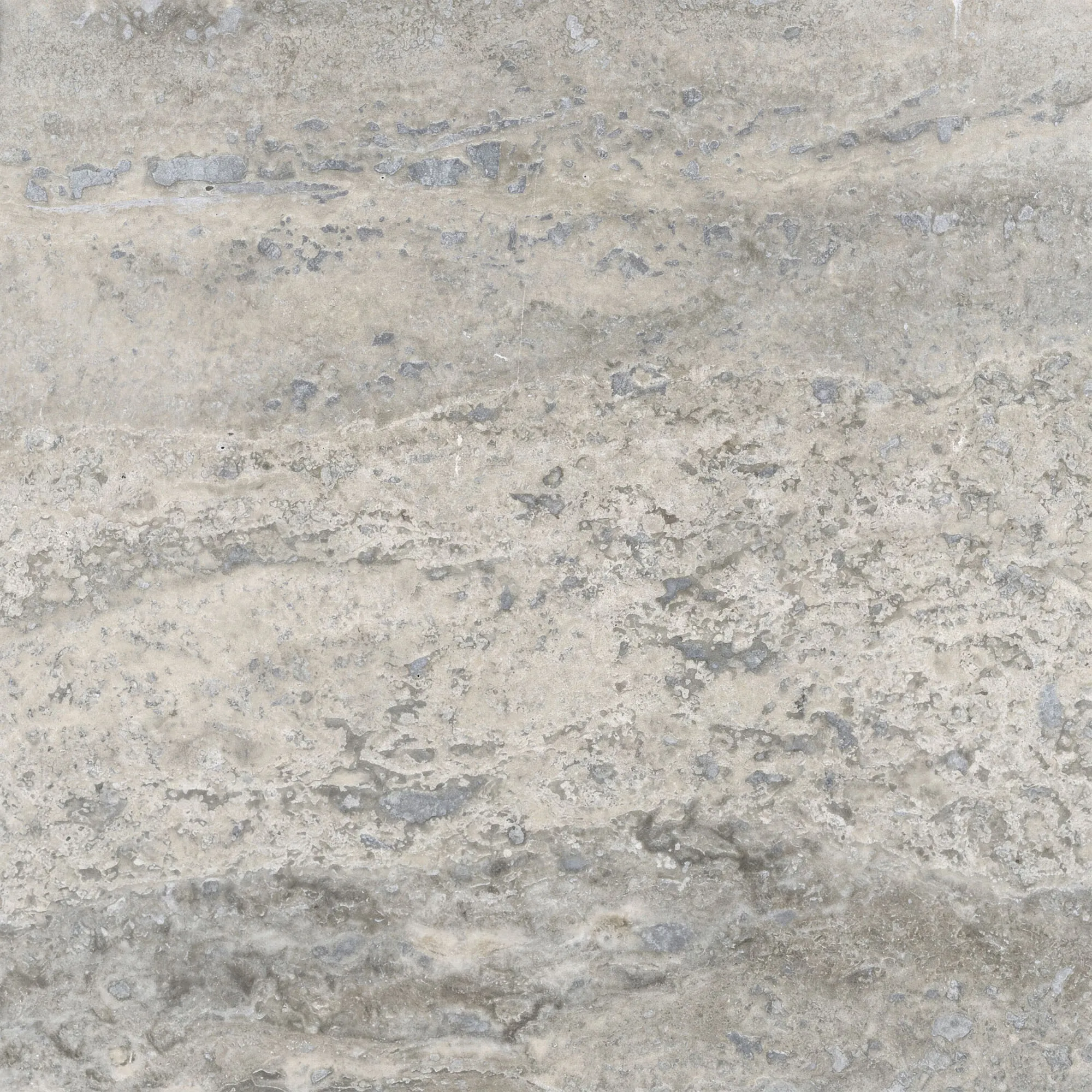 Travertine Silver är en svaltonad travertin med mjuka silvergrå och ljusa greigefärgade toner, subtil linjär rörelse och naturliga porer. Ytan har ett lugnt och mineraliskt uttryck där ton och variation skapar djup utan starka kontraster. Varje skiva har sin egen balans av textur och rörelse, vilket ger ett återhållsamt och sammanhållet helhetsintryck.
